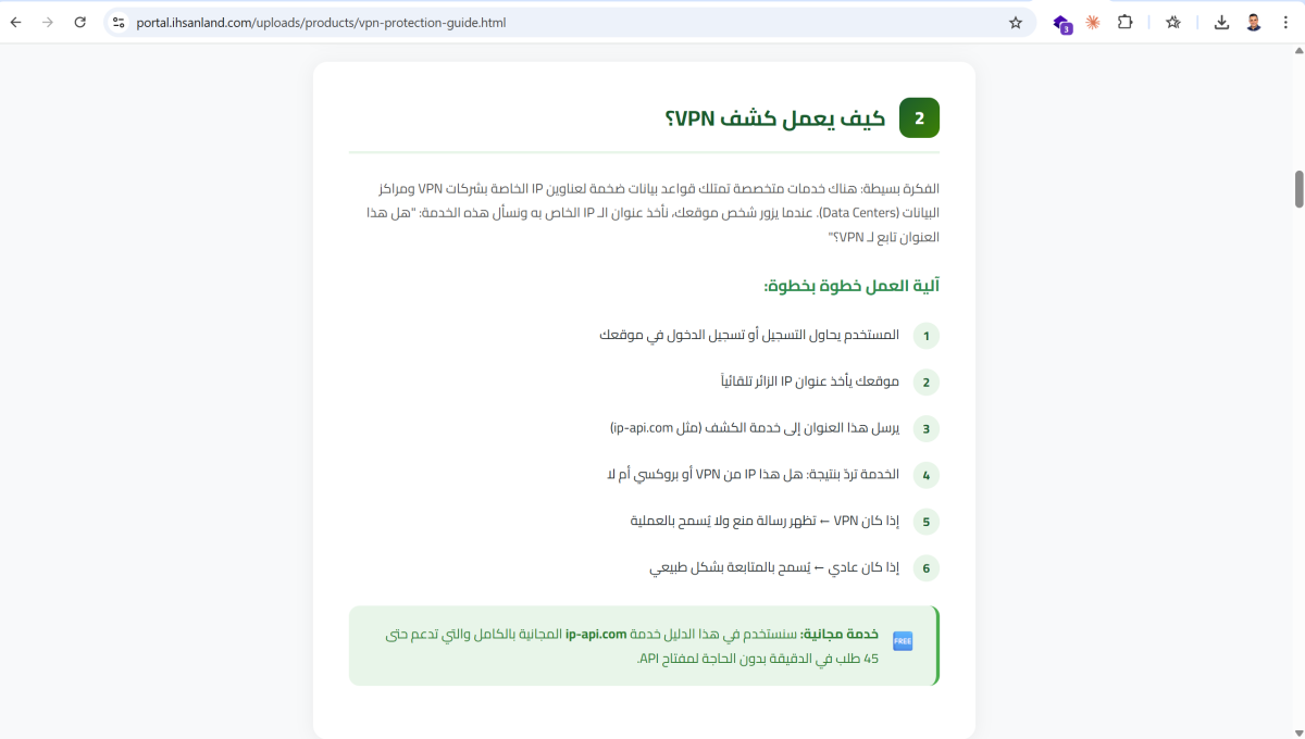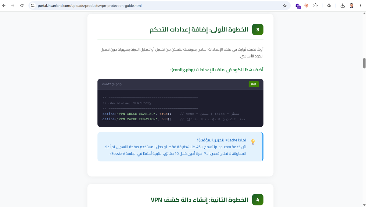 أكواد PHP جاهزة: دالة isVPN() المتكاملة مع نظام التخزين المؤقت (Caching) لضمان سرعة الموقع.