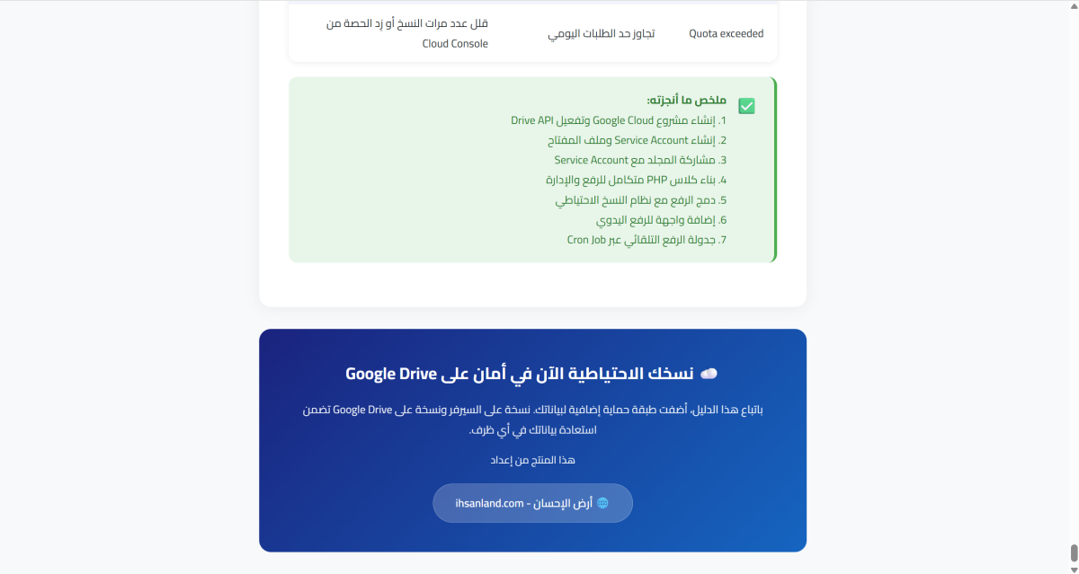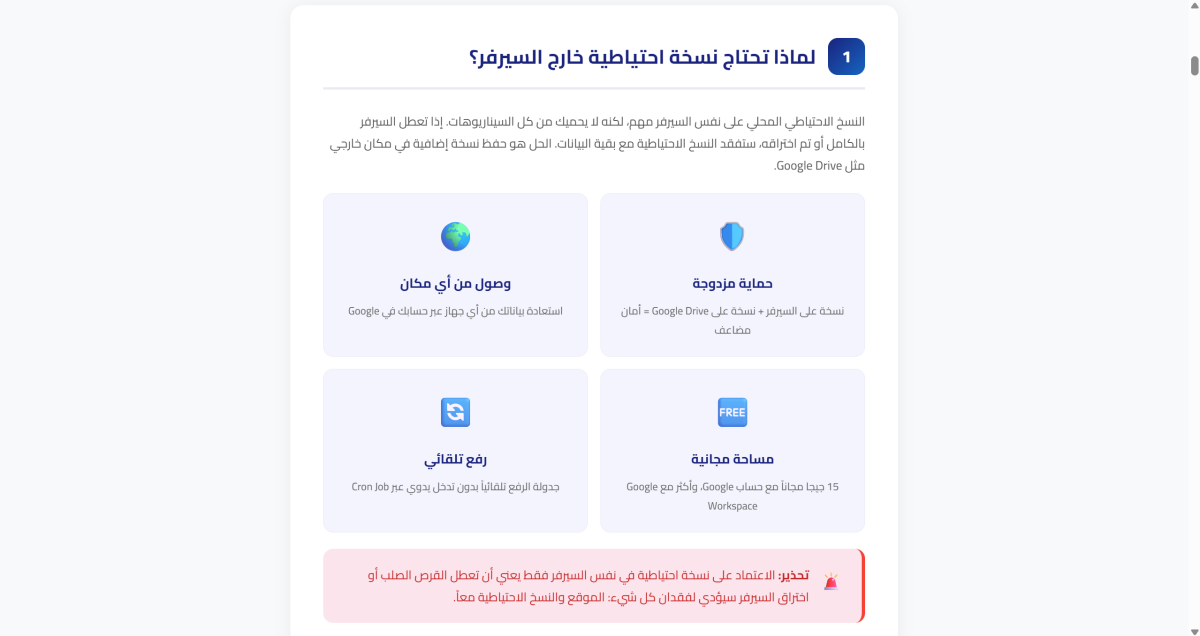 هذا الدليل العملي يعلّمك خطوة بخطوة كيف تربط نظام النسخ الاحتياطي الخاص بموقعك مع Google Drive، سواء باستخدام: